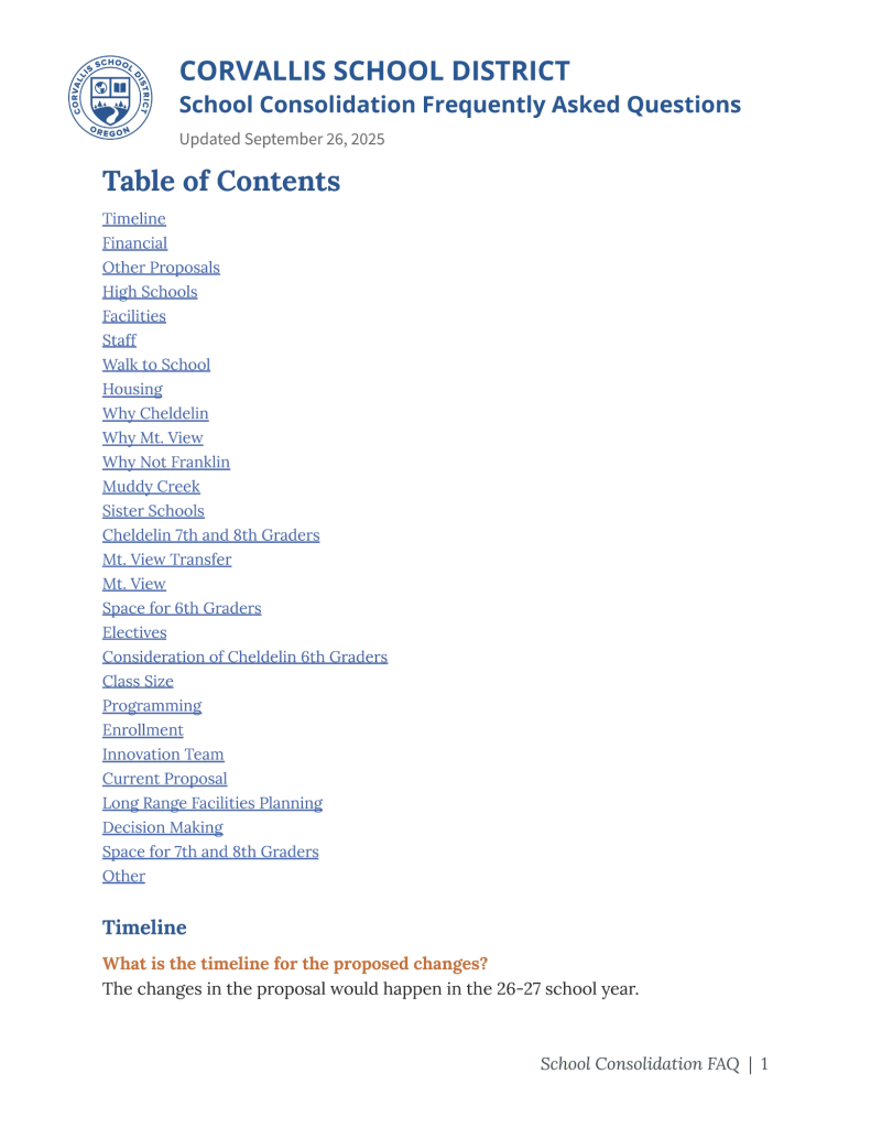 The district is actively collecting all of the questions asked about consolidation, including those from the listening sessions, and has created a Consolidation FAQ. This document will be updated each week with new questions and answers.