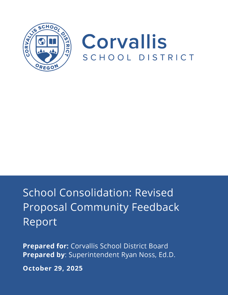 We have had this feedback reviewed by an Oregon State University researcher, who developed the CSD School Consolidation Community Engagement Report, highlighting common themes. Additionally, the district created a Stoplight Report to discuss the feasibility of suggested proposals.