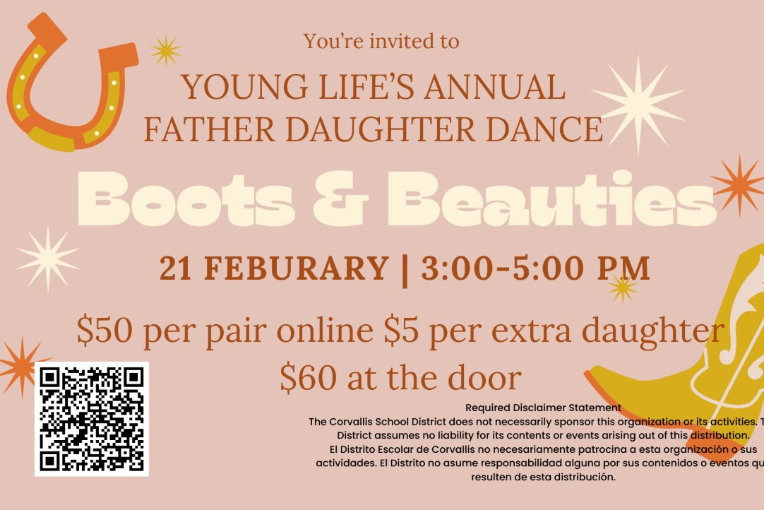 Annual Father Daughter Dance. For Fathers and daughters of all ages to enjoy a special night and create lasting memories having fun together.