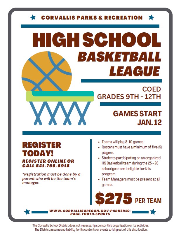 Join Parks & Rec high school basketball league. We still have spots open, sign up your team today!