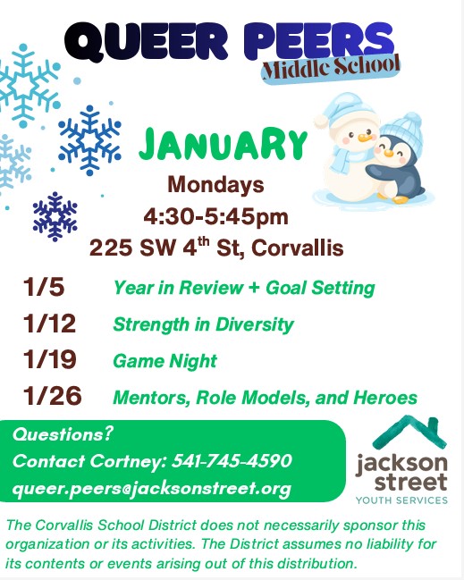 The Queer Peers Middle School social and support group is a safe and inclusive space for LGBTQIA+ youth to come together, build community, and have fun. Our aim is to provide a supportive environment where young people can socialize, learn, and grow alongside their peers.