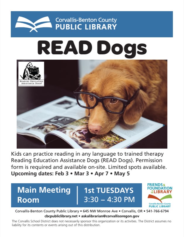 Kids can practice reading in any language to trained therapy Reading Education Assistance Dogs (READ Dogs).