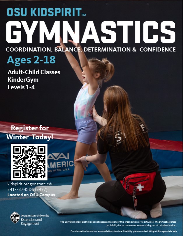Join us for a winter full of fun in the KidSpirit Gymnastics room! With classes for kids ages 2-18, there is fun for everyone! Watch as your kiddo gains skills and confidence on the beam, floor, vault and bars!