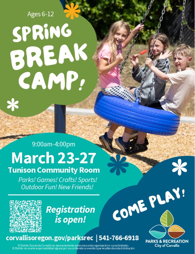 Spring Break Camp with Parks & Rec! Join us for a fun week of arts, crafts, games, and outdoor adventures! Make new friends, explore local parks, and play sports and field games all week long.