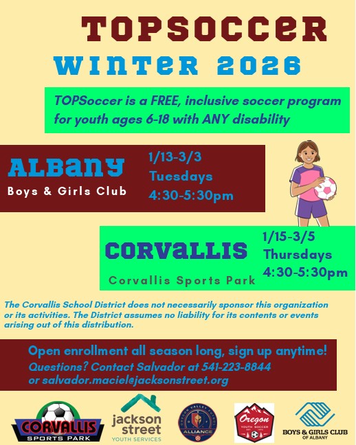 Join us for the winter session of TOPSoccer! US Youth Soccer TOPSoccer (The Outreach Program for Soccer) is a recreational sports program for children and adults with intellectual, emotional, or physical disabilities offered only through local US Youth Soccer-affiliated soccer clubs.