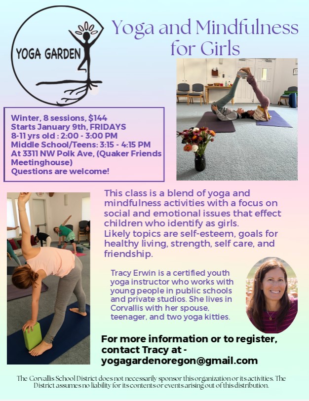 This class is a blend of yoga and mindfulness activities with a focus on physical, social and emotional issues that affect children who identify as girls.