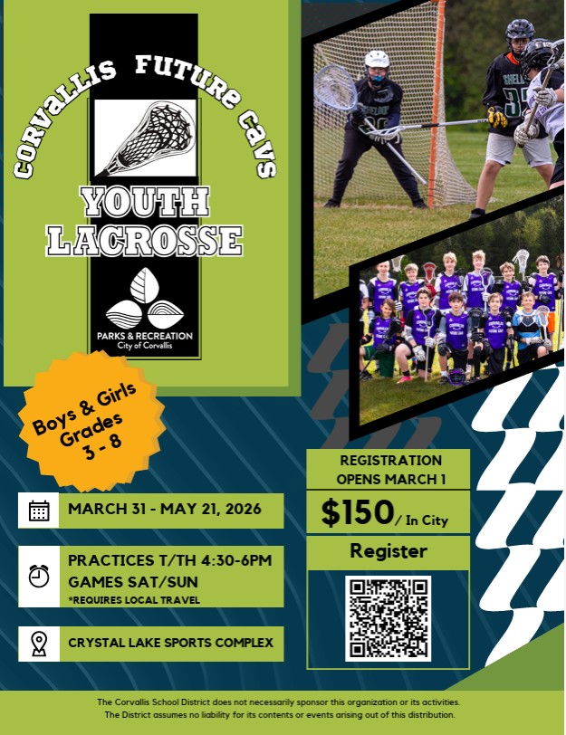 This spring, join the Future Cavs Lacrosse Team! Whether you're a beginner or an experienced player, this is your chance to be a part of a team, develop skills, and have a TON of FUN!