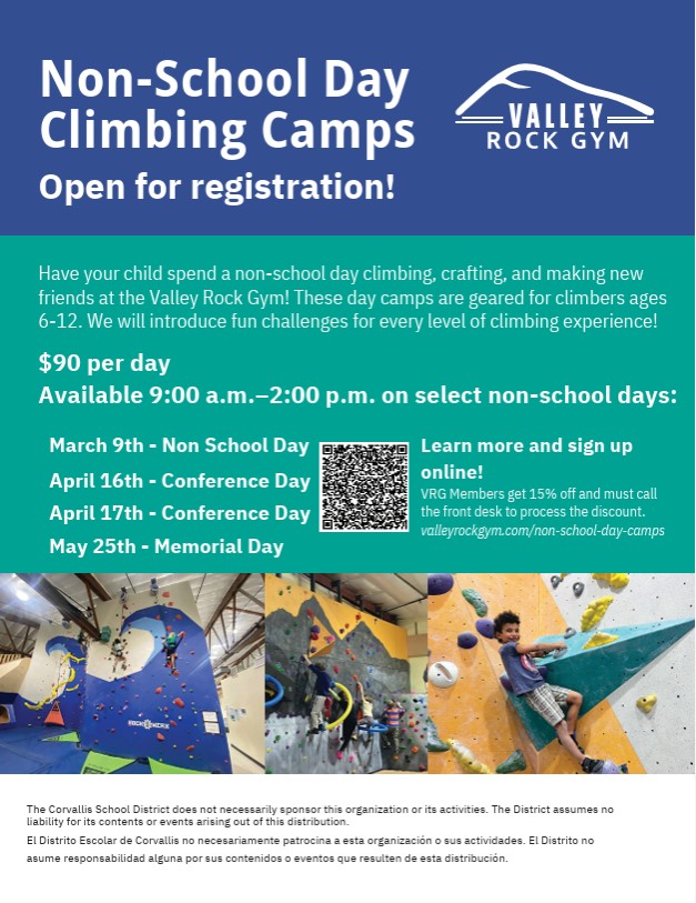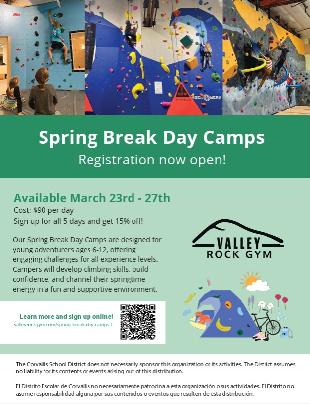 Valley Rock Gym Day Camps: Monday March 23rd - Friday March 27th