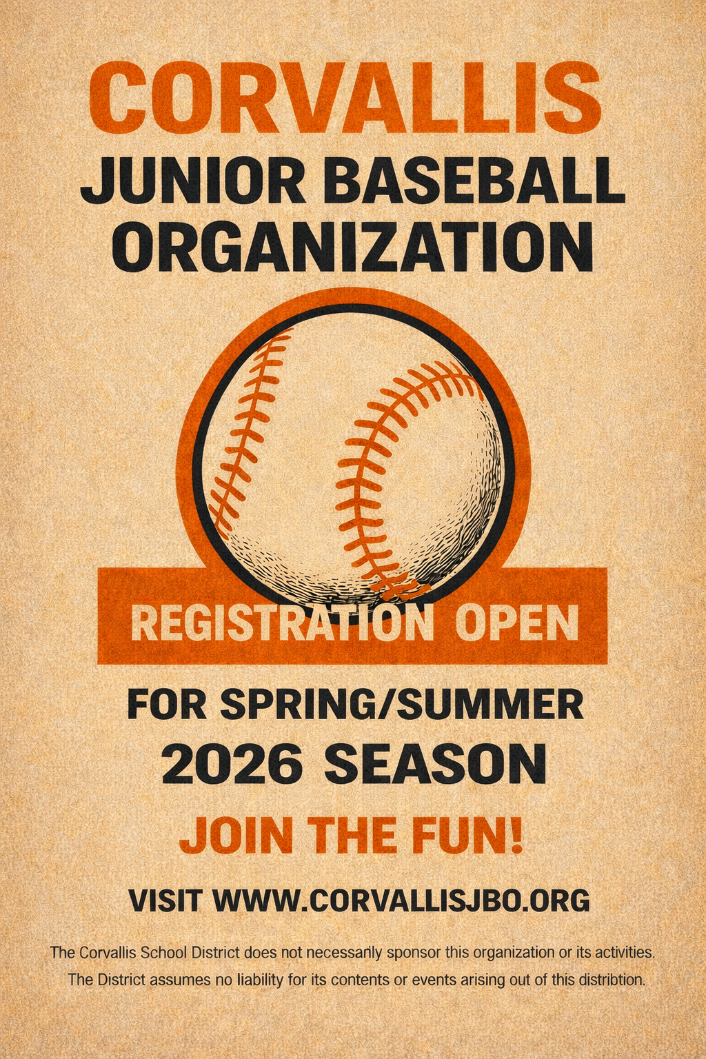Registration for Corvallis JBO is open! Teams play across the Willamette Valley during the week against other JBO teams. The season runs March through mid-July. Tryouts are Feb 15, 22 and March 1, 4-6pm. Cage times and clinics are available now for participants.
